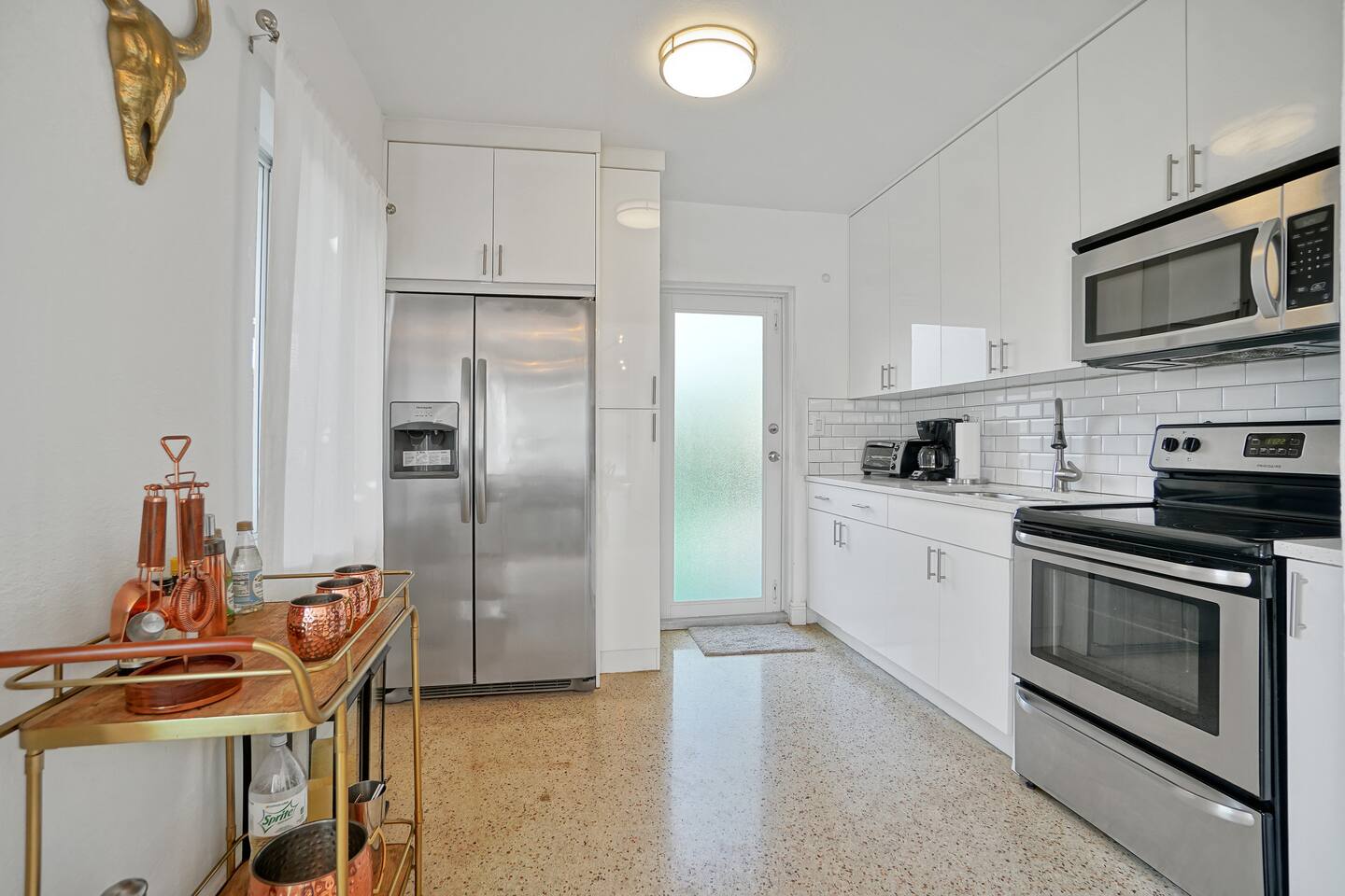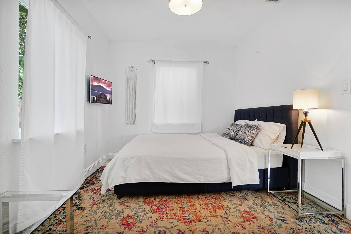 Bohemian Bungalow offers guests a cozy retreat in the middle of the city. This 4 bed, 2 bath home provides everything you need for a relaxing stay in Miami, private heated pool, outdoor lounge area and BBQ. Each bedroom features a queen bed, linens & towels, and 4 smart TVs. Located just steps from the Design District, the Bungalow is 5 minutes from Wynwood and 10 minutes to South Beach and Brickell. The home comes completely furnished, with bath & beach towels, free WiFi and a kitchen.